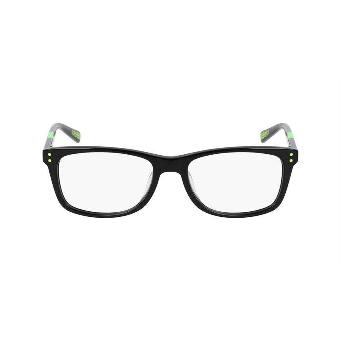 Nike 5538 N 001 glasses present a sleek rectangular silhouette designed specifically for children, combining style and practicality for everyday wear. Crafted with a full acetate frame in classic black, these glasses offer a refined yet durable option that complements youthful energy while ensuring a comfortable fit throughout the day.