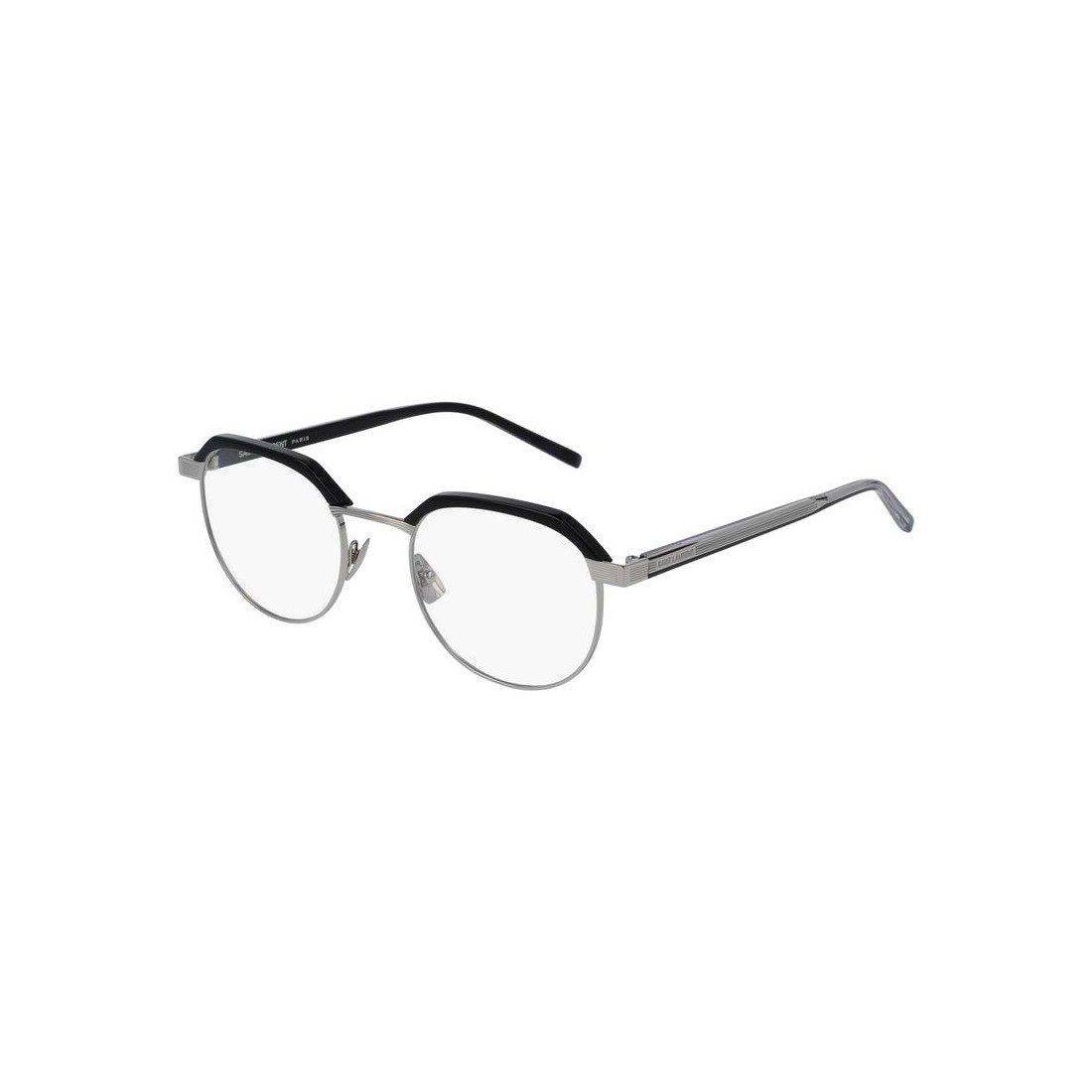 Crafted with a sleek black metal front and recycled metal temples, these glasses offer both durability and lightweight comfort. The generous 21mm bridge and 145mm temple length ensure a secure and comfortable fit throughout the day. The minimalist design is enhanced by fine detailing, reflecting Saint Laurent’s premium positioning and commitment to sophisticated craftsmanship.