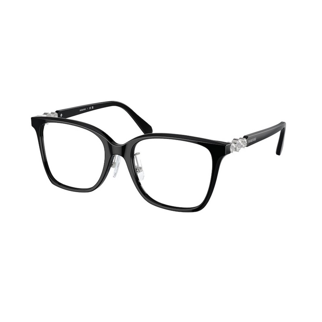 Crafted with a sleek black acetate front and complemented by metal temples, these glasses offer a balanced combination of durability and lightweight comfort. The generous 18 mm bridge and 145 mm temple length ensure a secure and comfortable fit throughout the day. With lens dimensions of 54 mm width and 45 mm height, the frame provides ample coverage while maintaining a graceful profile. Swarovski’s attention to detail is evident in the subtle yet luxurious design, reflecting the brand’s premium positioning and commitment to quality eyewear.
