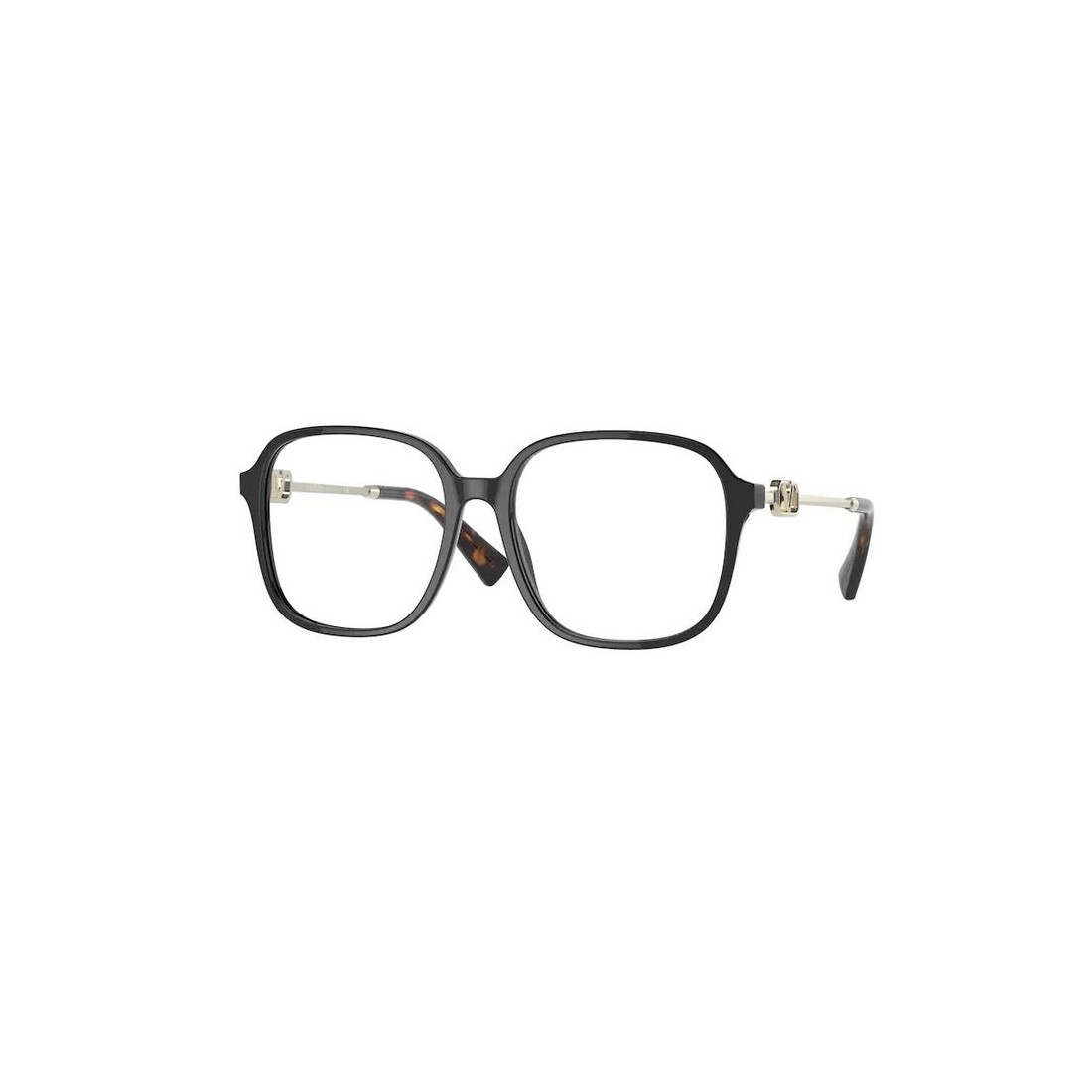 Crafted with a sleek black acetate front and complemented by metal temples, these glasses offer a perfect balance of durability and lightweight comfort. The precise measurements, including a 16 mm bridge and 140 mm temple length, ensure a secure and comfortable fit throughout the day. The generous lens width of 52 to 54 mm enhances visual clarity while maintaining a flattering profile. Valentino’s premium craftsmanship is evident in the subtle yet distinctive design details, delivering a statement piece that elevates any look with understated luxury.