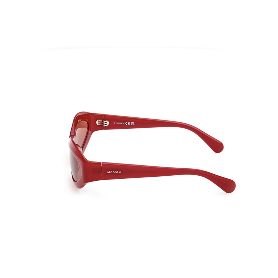 Max & Co. oval full-rim glasses in a striking red acetate frame offer a refined and elegant look designed for women seeking a sophisticated accessory for daily wear. The generous 19 mm bridge and 125 mm temples ensure a comfortable fit that adapts seamlessly to various face shapes, enhancing both style and wearability. These glasses combine classic oval contours with a vibrant colour that adds a subtle yet confident statement to any outfit.