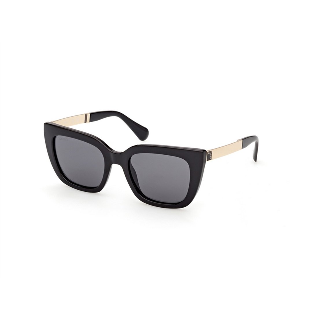 Crafted with an acetate front in a glossy black finish and complemented by sleek metal temples, this pair offers both durability and lightweight comfort. The generous 20mm bridge and 140mm temple length ensure a secure and comfortable fit throughout the day. Featuring lenses with a UV index of 3, they provide reliable protection against harmful rays, making them ideal for outdoor use. The distinctive cat-eye shape accentuates facial features gracefully, while the premium materials reflect Max & Co’s commitment to luxury and quality.